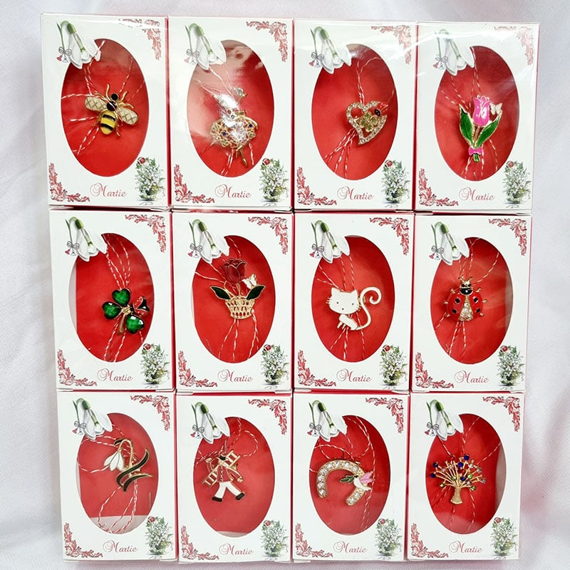Martisoare in cutiuta brosa metal engros set 24/buc
