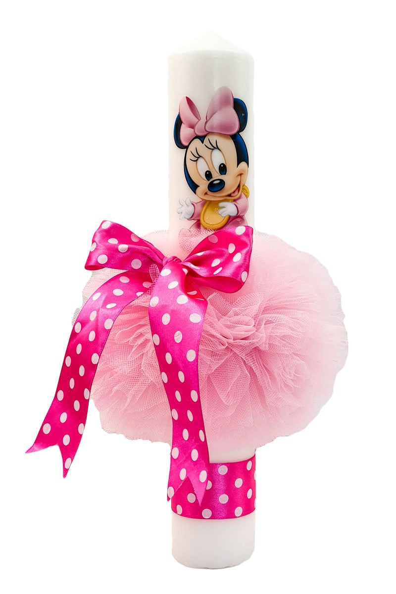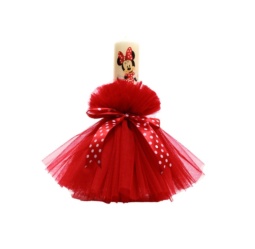 Lumanare botez Minnie Mouse tulle rosu, en-gros
