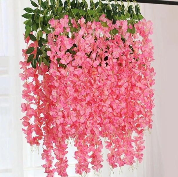 Set 12 Bucati Planta Artificiala Curgatoare, Agatat ghirlanda flori de matase, pentru nunta petrecere gradina in aer liber verdeata acasa decorare de perete, Lungime 1.1m, Roz