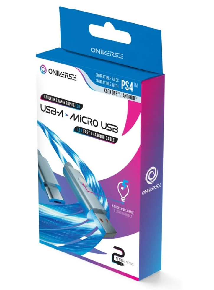 Oniverse Micro Usb Charge Cable With Led, 2 Meters White PC|PS4|XBOX ONE