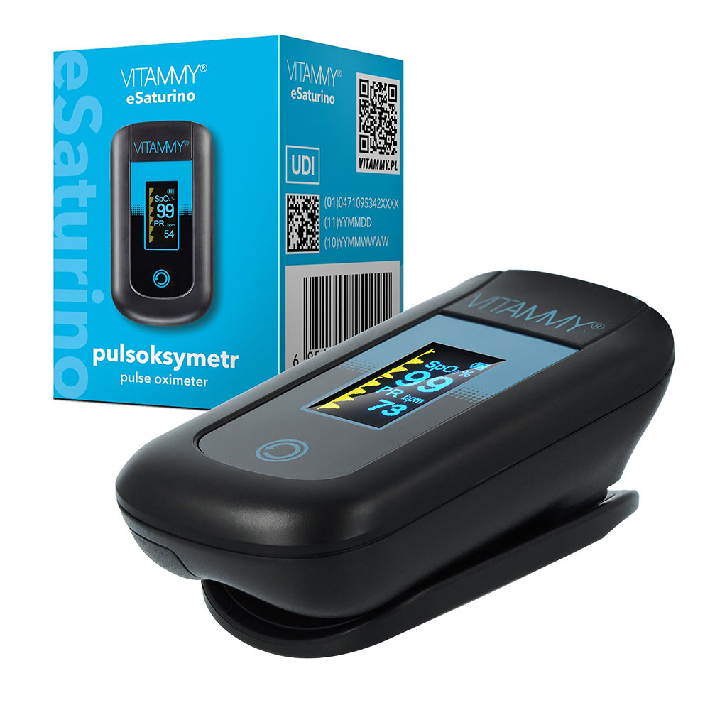Pulsoximetru Vitammy eSaturino, masoara saturatia de oxigen din sange si pulsul, algoritm de toleranta la miscare, ecran OLED bicolor, 4 directii de afisare, Negru