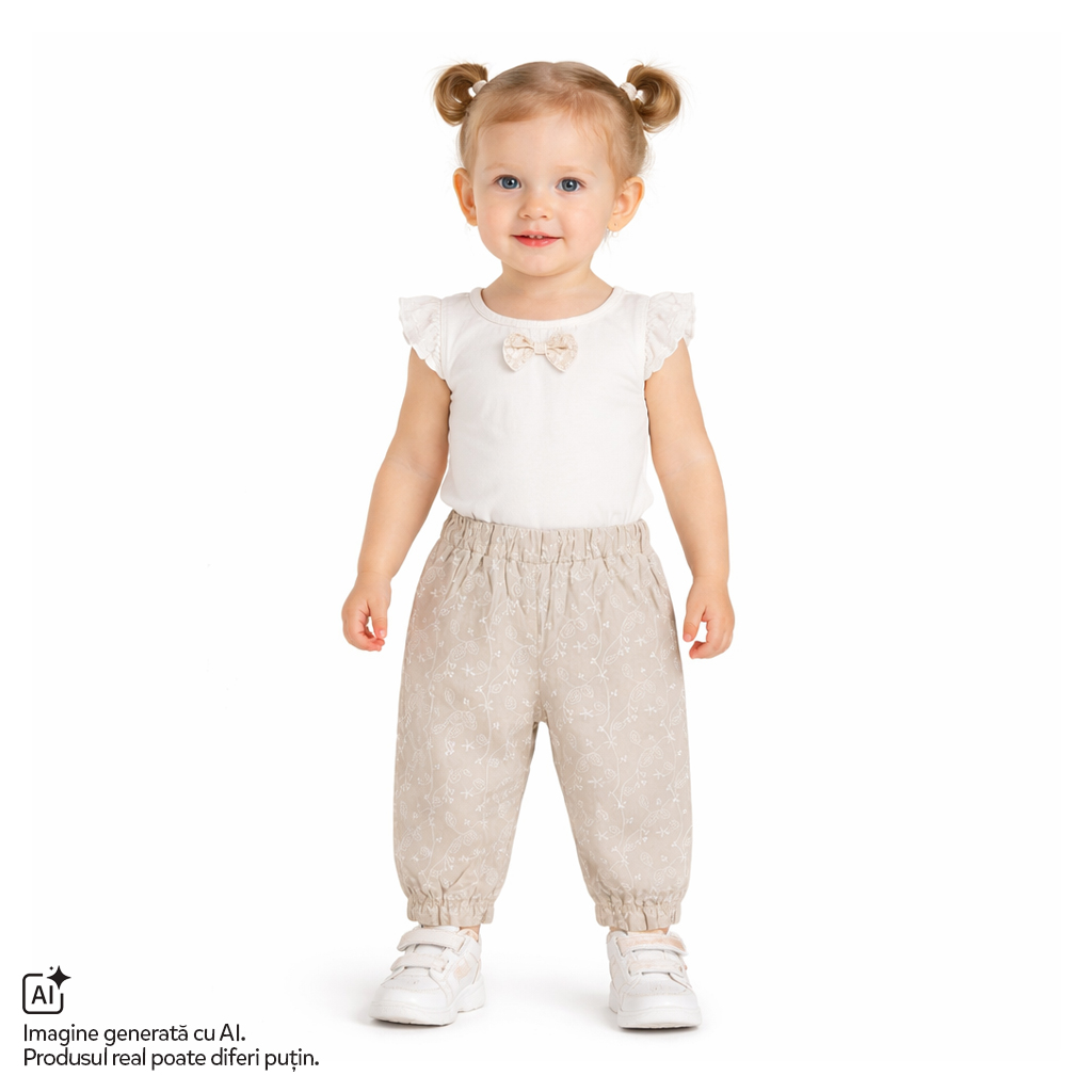 Pantaloni lungi copii Chicco, Bej cu model, 01239-70MC