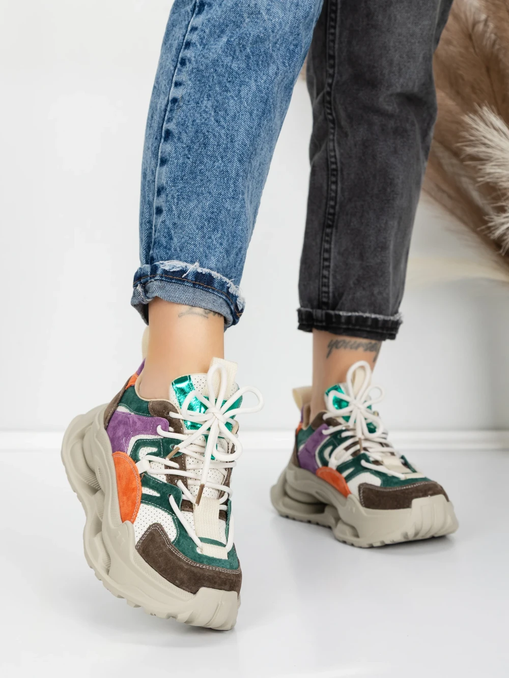 Pantofi Sport Dama din piele naturala HY6383 Maro-Verde | Franco Gerardo