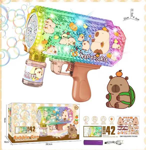 Pistol Automat cu LED 30cm cu Baloane de Sapun, din Plastic, Model Girafa, Diferite Culori Engros
