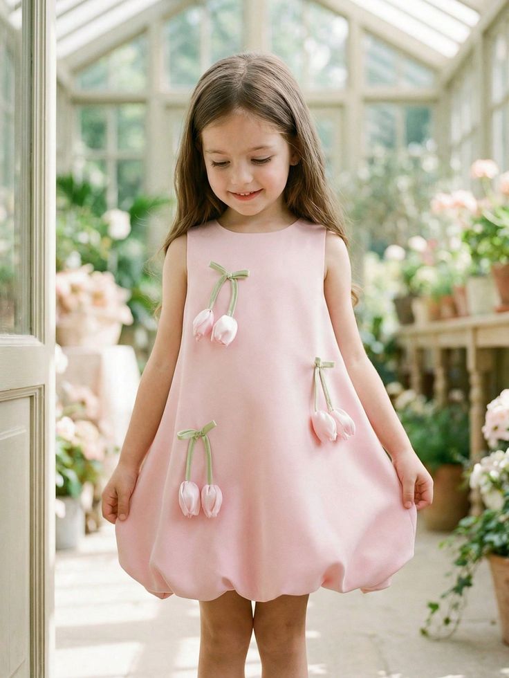 Rochie casual roz cu lalele pentru fete - Casidy