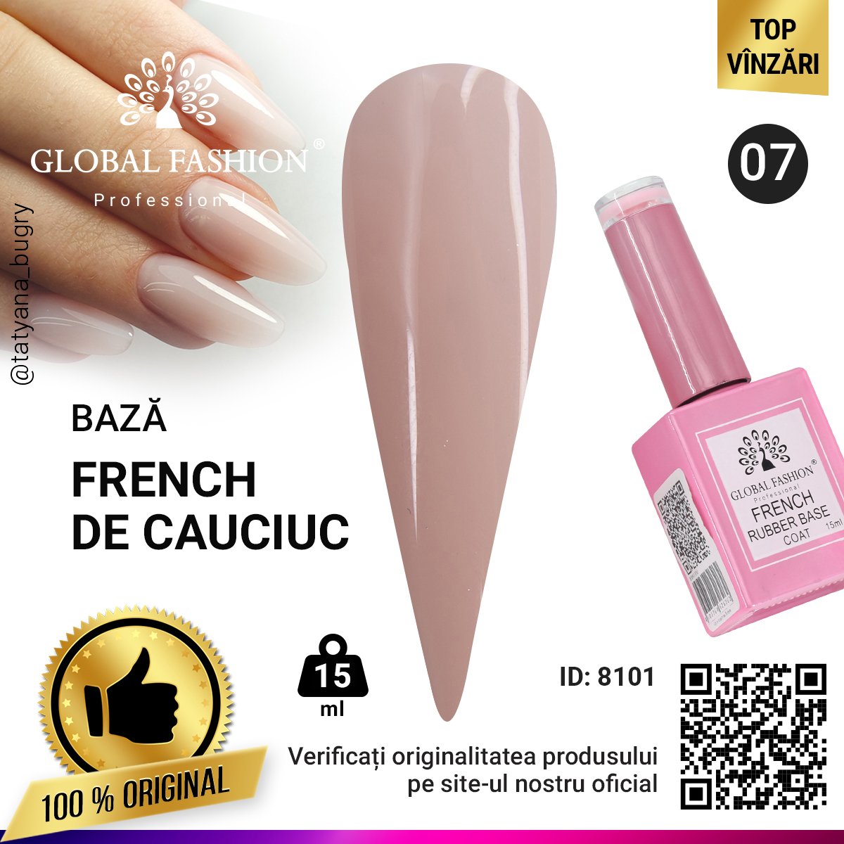 Rubber Base Coat French, baza cauciucata unghii, Global Fashion, nude, 15ml, 07 Engros