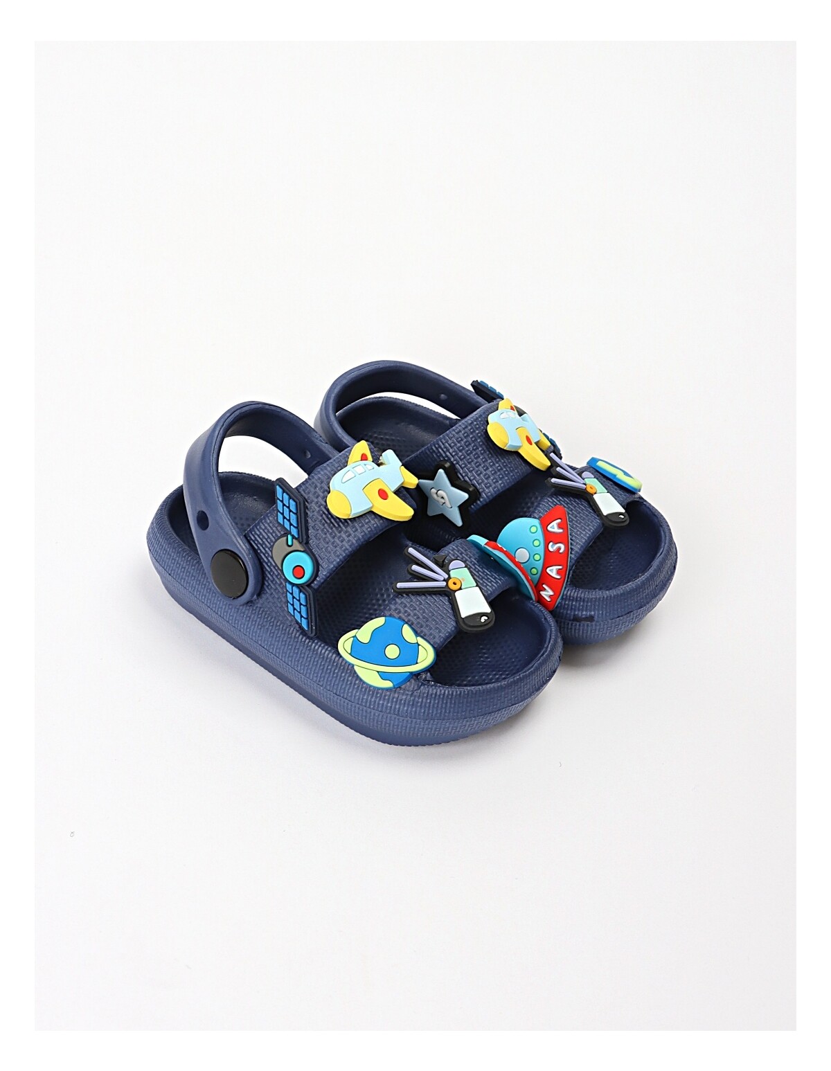 Sandale pentru Copii- Baieti, cu Arici si Lumini, Talpa Usoara, Protectie degete, Engross, 6/set, marimi 22-27, Negru-Bleumarin