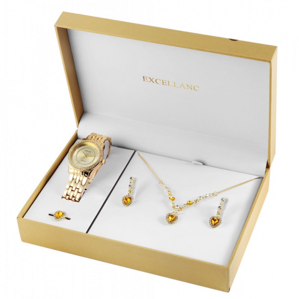 Set cadou, ceas dama, Excellanc, Auriu, Sublim Fit Utopia, colier cu pandativ, 1 pereche cercei, inel dama Excellanc, PMC1800220-004SE Engros