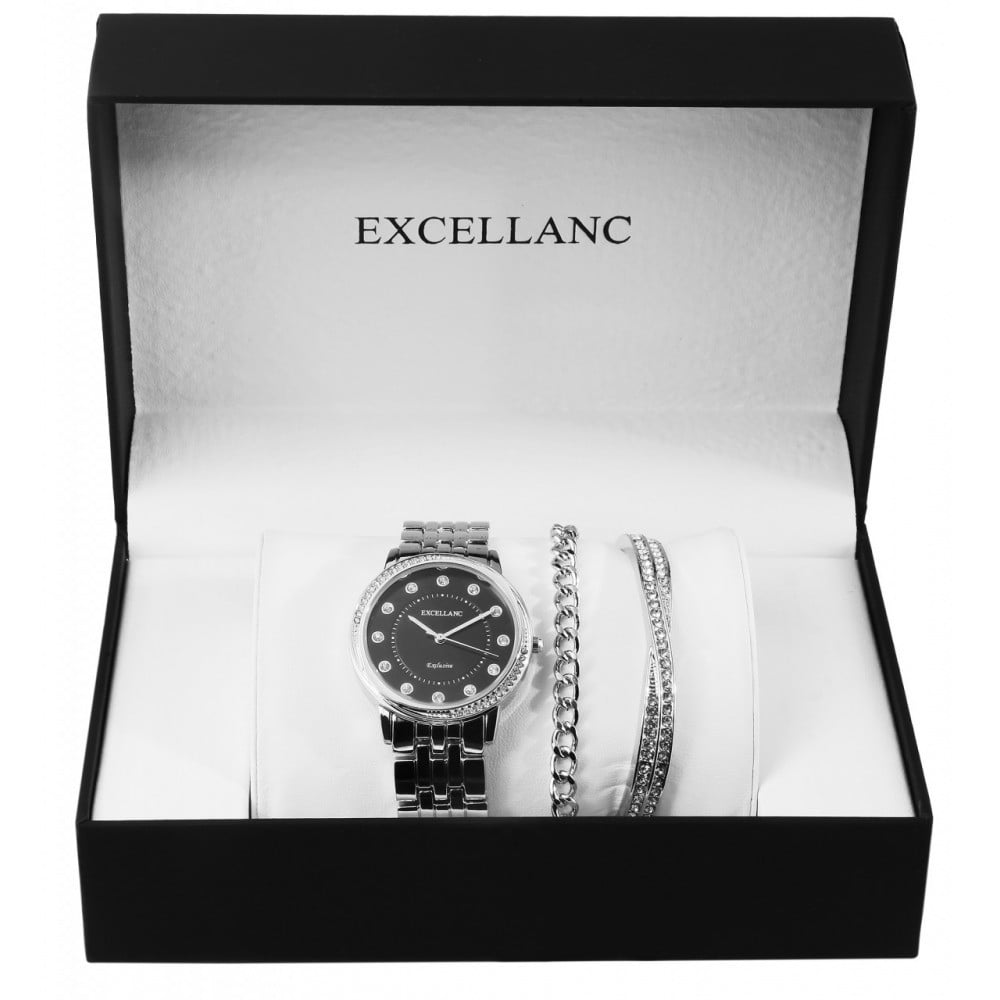 Set cadou ceas dama cu curea metalica in combinatie cu 2 bratari la moda, Argintiu, Excellanc, PM1800218-004 Engros