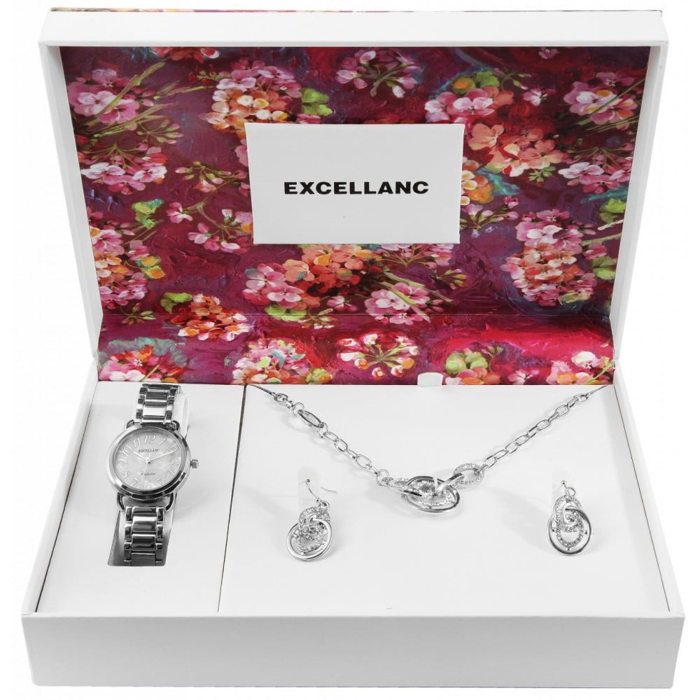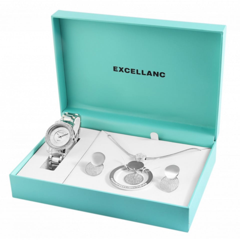 Set cadou, ceas dama, Excellanc, Argintiu, colier cu pandativ, 1 pereche cercei, PM1800203-002 Engros