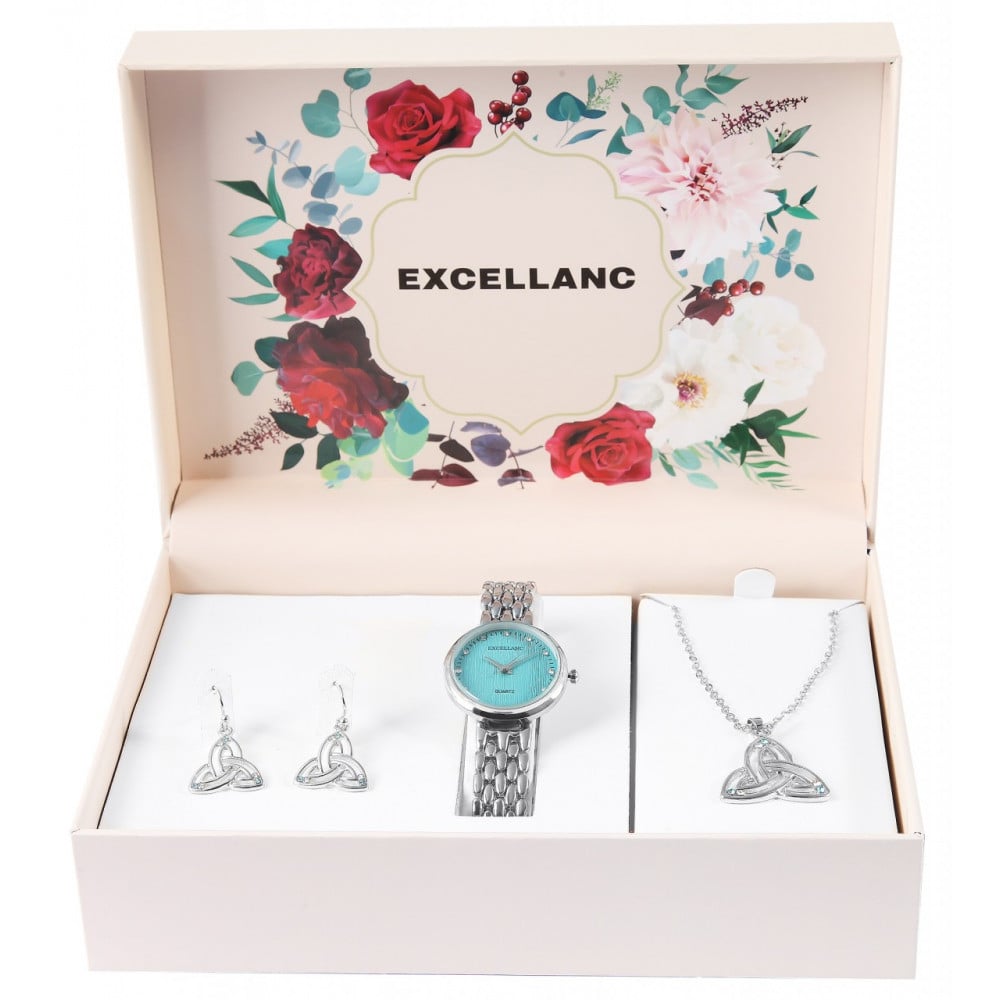 Set cadou, ceas dama, Excellanc, Argintiu, colier cu pandativ, 1 pereche cercei,Excellanc Engros
