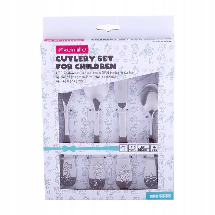 Set Engros de tacamuri pentru copii Kamille KM-5335, din inox, 4 piese, in cutie cadou