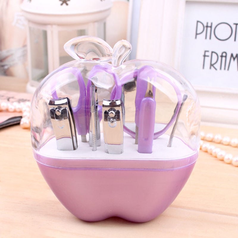 Set de Manichiură și Pensetă – 9 Piese, Potrivite pentru Calatorii,copii, colori Mov, roz,verde Suport in Forma de Mar, ENGROS