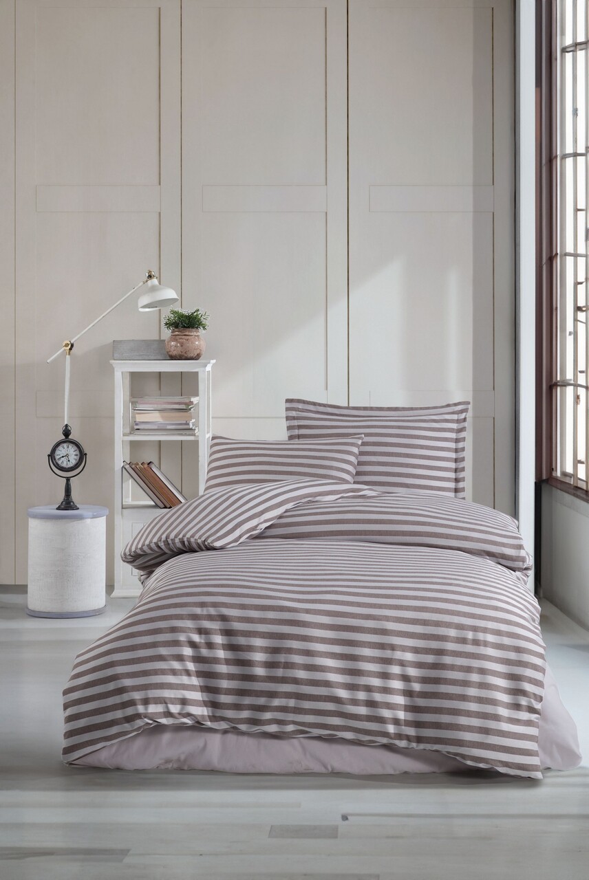 Set lenjerie de pat pentru o persoana Single XL (DE), 2 piese, Lessentiel Maison, Yelpaze, 65% bumbac/35% poliester, Maro