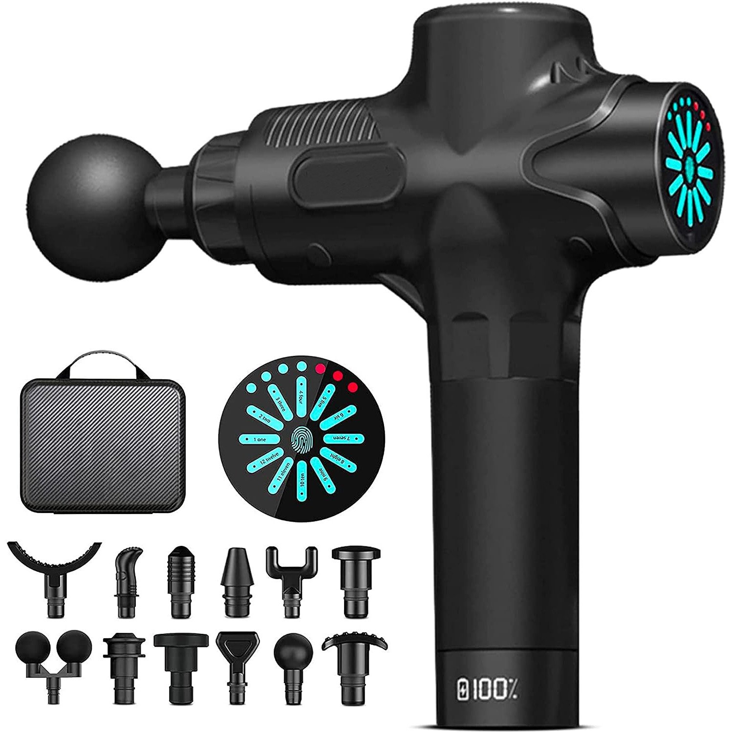 Aparat pentru masaj profesional Engros, tip pistol, anticelulitic, relaxare pentru corp, silentios cu doar 40dB, ecran LCD, timp de operare pana la 15h, cu 12 capete pentru orice grupa musculara, Set, Negru, Regal Bliss ®