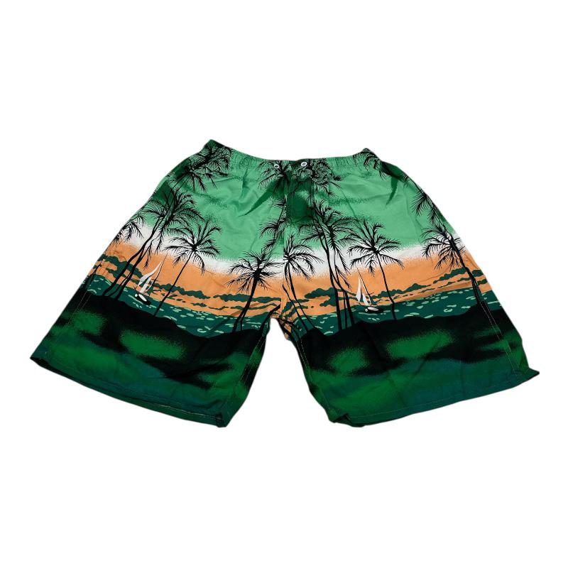 Pantaloni tip short de baie pentru barbati cu model palmier – 100% poliester, cu buzunar si plasa interioara, En-gros