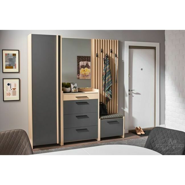 Hol Solaris, set modular cu pantofar și oglindă, PAL melaminat, cremona/grafit