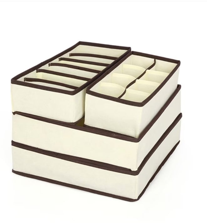 Set 4 piese organizator, pentru lenjerie de corp, cutii depozitare sosete, Bej