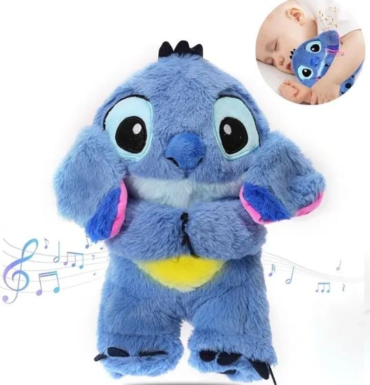 Stitch Engros 28 cm, Jucarie de plus care respira si ii lumineaza inima