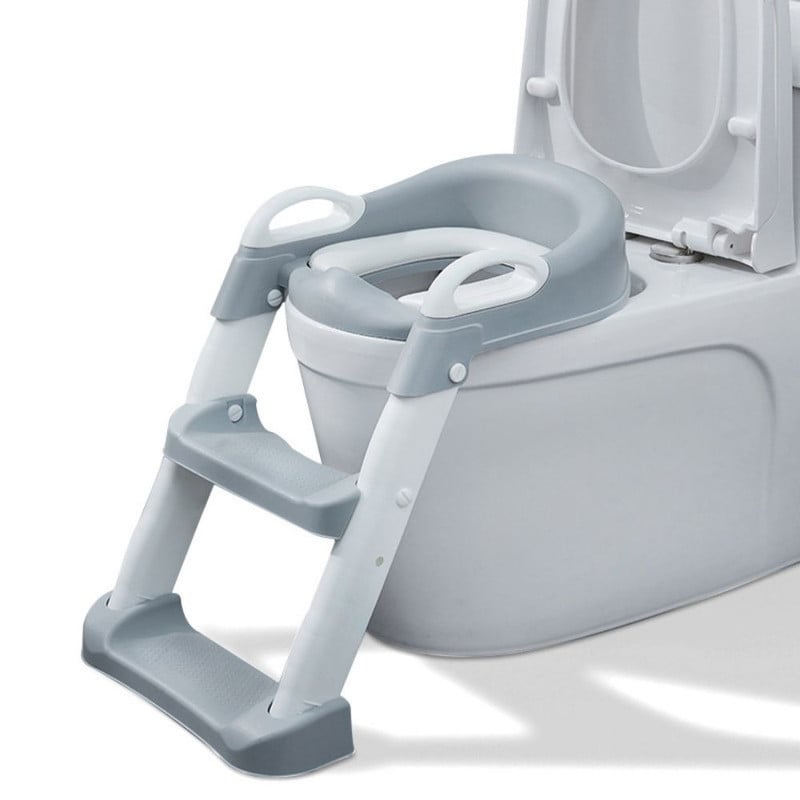 Reductor pliabil cu scara pentru toaleta, 2 trepte anti-aderente reglabile in 2 pozitii, Sezut impermeabil, PP Eco Frendly, 49x38x40.5 cm, Gri Engros