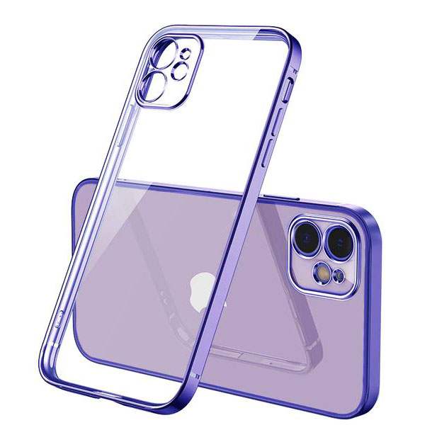 Husa model Luxury, Full cover, Compatibila cu iPhone 11, Margini colorate, Transparent, Mov Engros