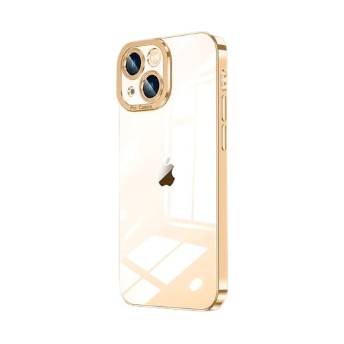 Husa model Luxury, Full cover, Compatibila cu iPhone 13, Margini colorate, Transparent, Auriu Engros