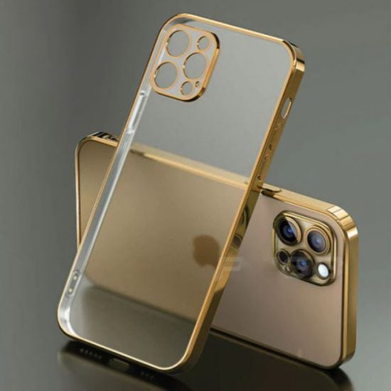 Husa model Luxury, Full cover, Compatibila cu iPhone 12 Pro, Margini colorate, Transparent, Auriu Engros