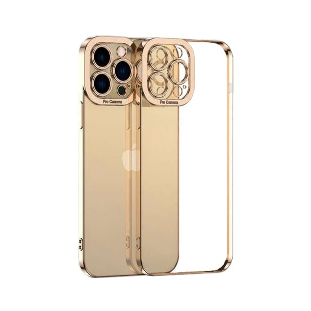 Husa model Luxury, Full cover, Compatibila cu iPhone 13 Pro, Margini colorate, Transparent, Auriu Engros