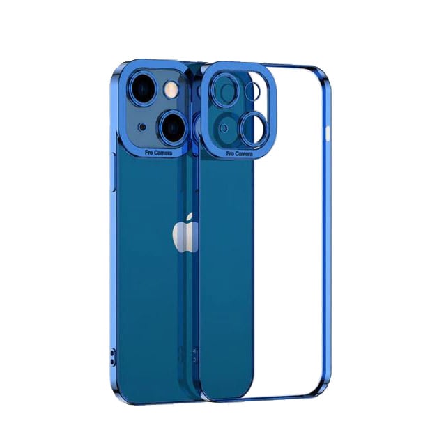 Husa model Luxury, Full cover, Compatibila cu iPhone 13 Pro, Margini colorate, Transparent, Albastru Engros