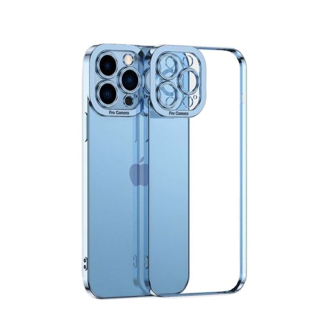 Husa model Luxury, Full cover, Compatibila cu iPhone 13 Pro Max, Margini colorate, Transparent, Albastru Engros
