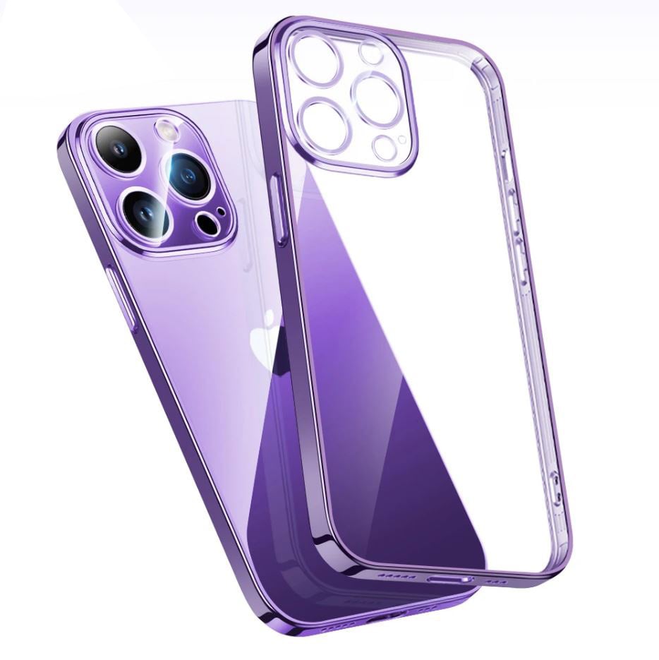 Husa model Luxury, Full cover, Compatibila cu iPhone 13 Pro Max, Margini colorate, Silicon transparent, Mov Engros