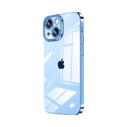 Husa model Luxury, Full cover, Compatibila cu iPhone 13, Margini colorate, Transparent, Albastru Deschis Engros