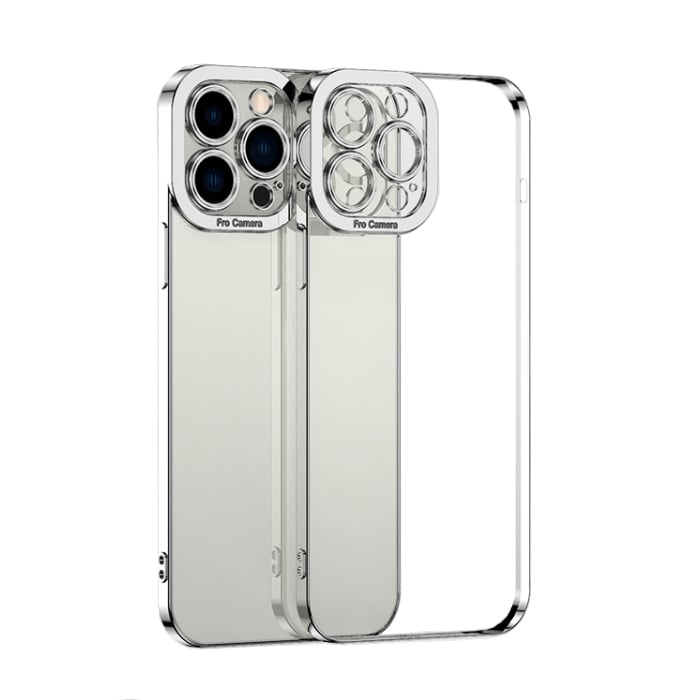 Husa model Luxury, Full cover, Compatibila cu iPhone 13 Pro Max, Margini colorate, Silicon transparent, Argintiu Engros