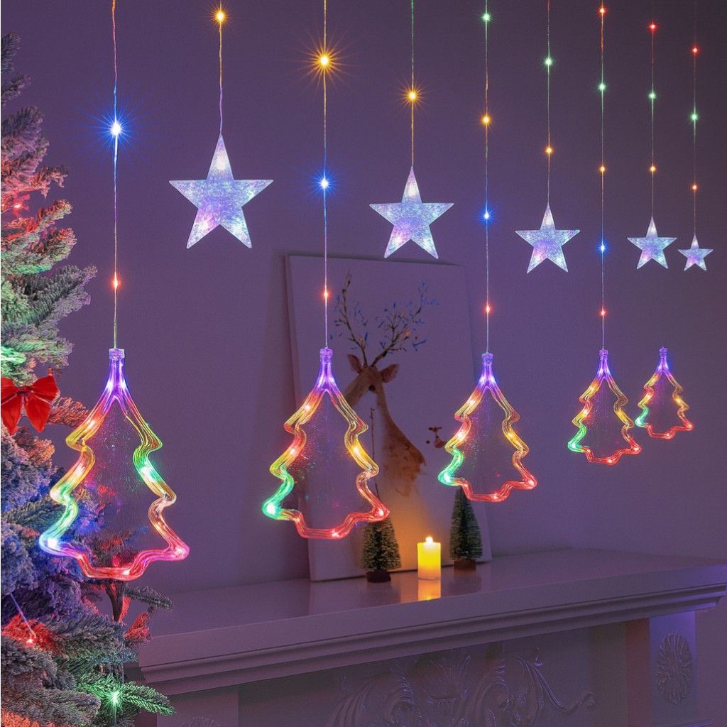 Instalație de Crăciun 10m Model Perdea, Lumini LED Multicolore, Fir Transparent, cu Mufa Conectabila prin Serie, pentru Interior și Exterior Engros