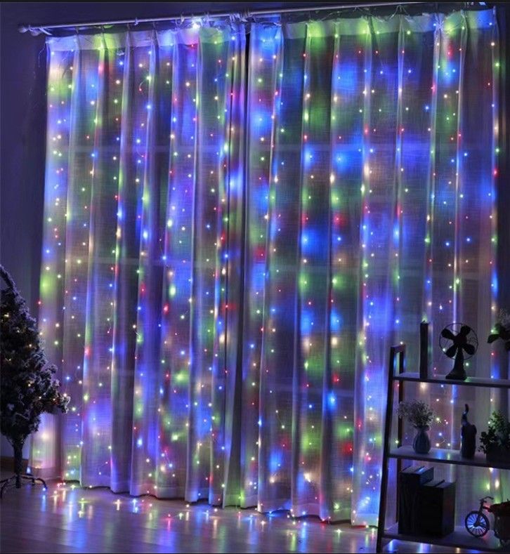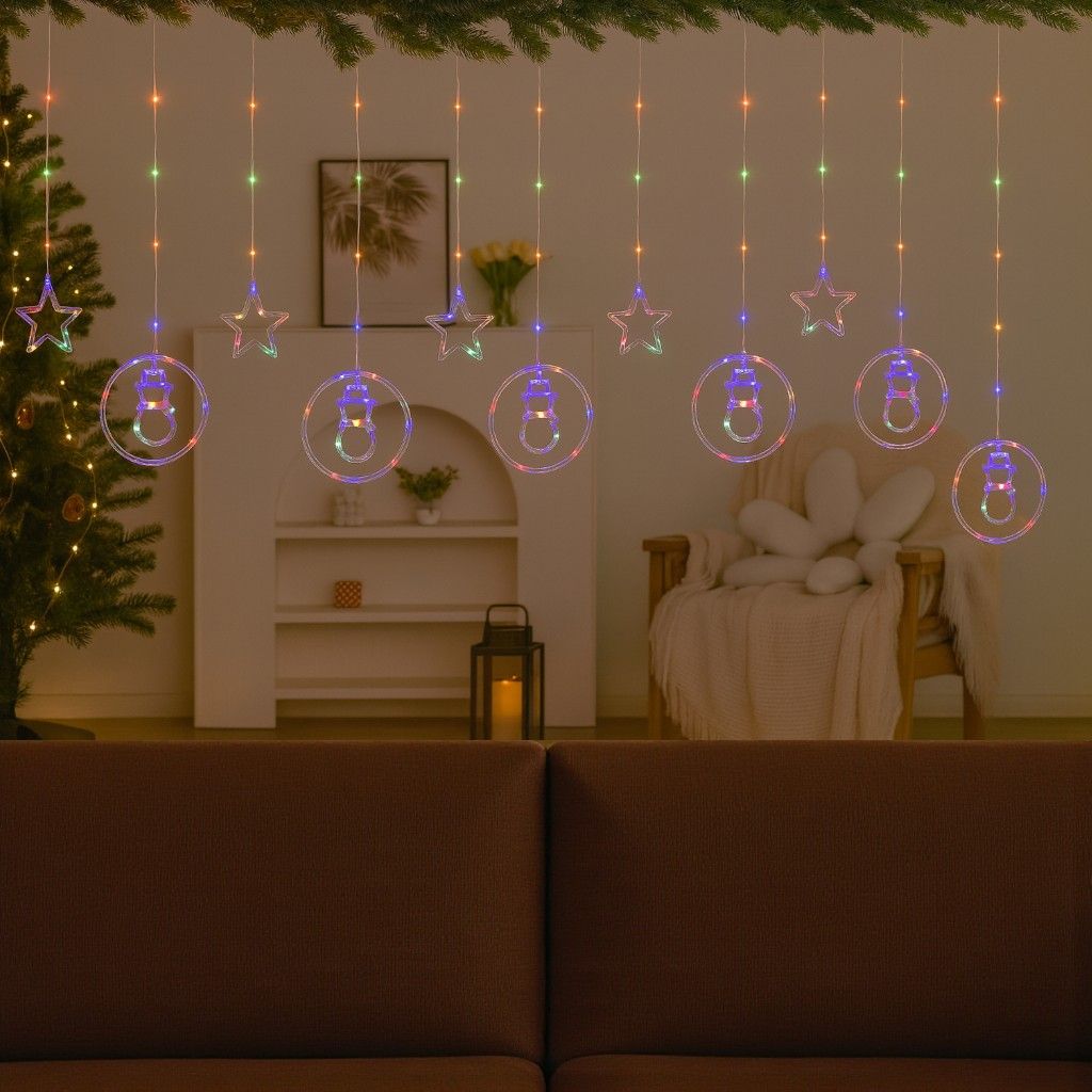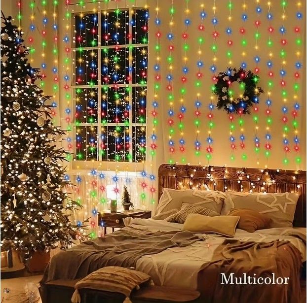 Instalație luminoasă Crăciun 120 LED-uri multicolor, 3 metri x 1 metru, fir transparent, model perdea, interconectabila – Engros