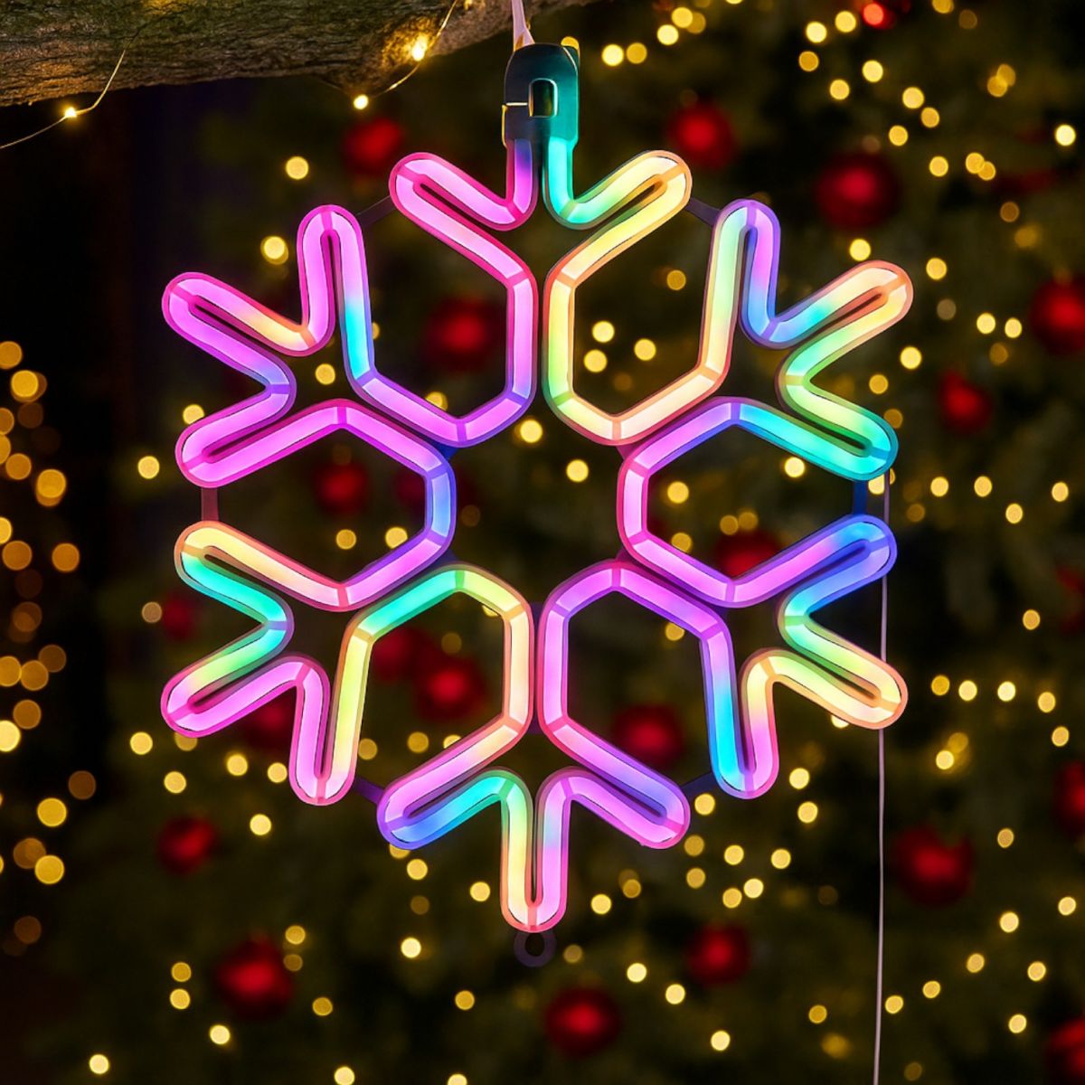 Decoratiune Crăciun 37x31cm Model Fulg cu Lumină Multicoloră LED, Ornament Suspendat Transparent Engros