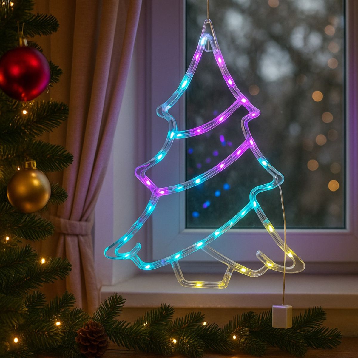Decoratiune Crăciun 37x30cm Model Brad cu Lumină Multicoloră LED, Ornament Suspendat Transparent Engros