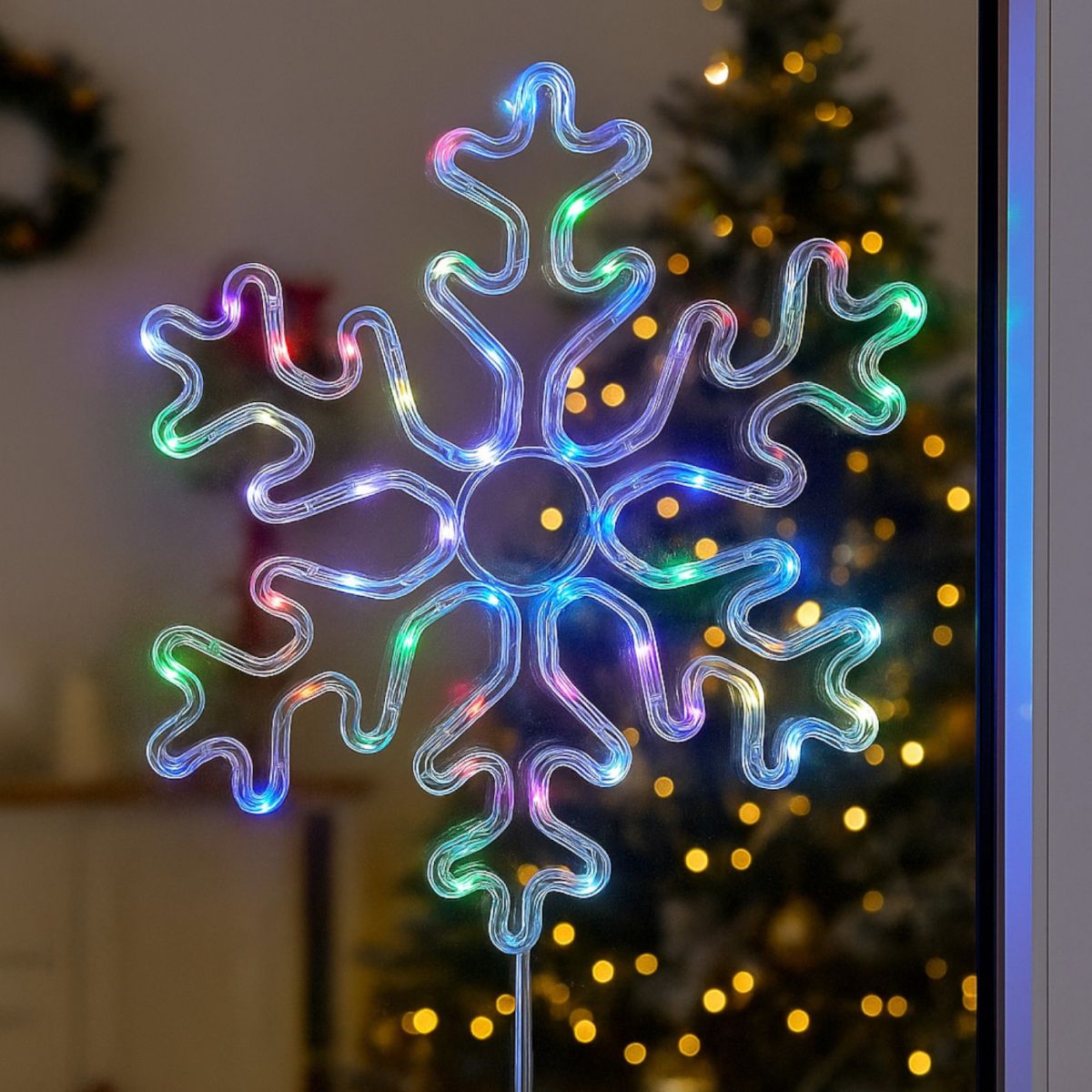 Decoratiune Crăciun 40x33cm Model Fulg, cu Lumină LED Multicolora, 8 Jocuri de Lumini din Silicon Ornament Suspendat Transparent Engros