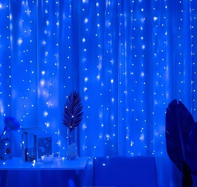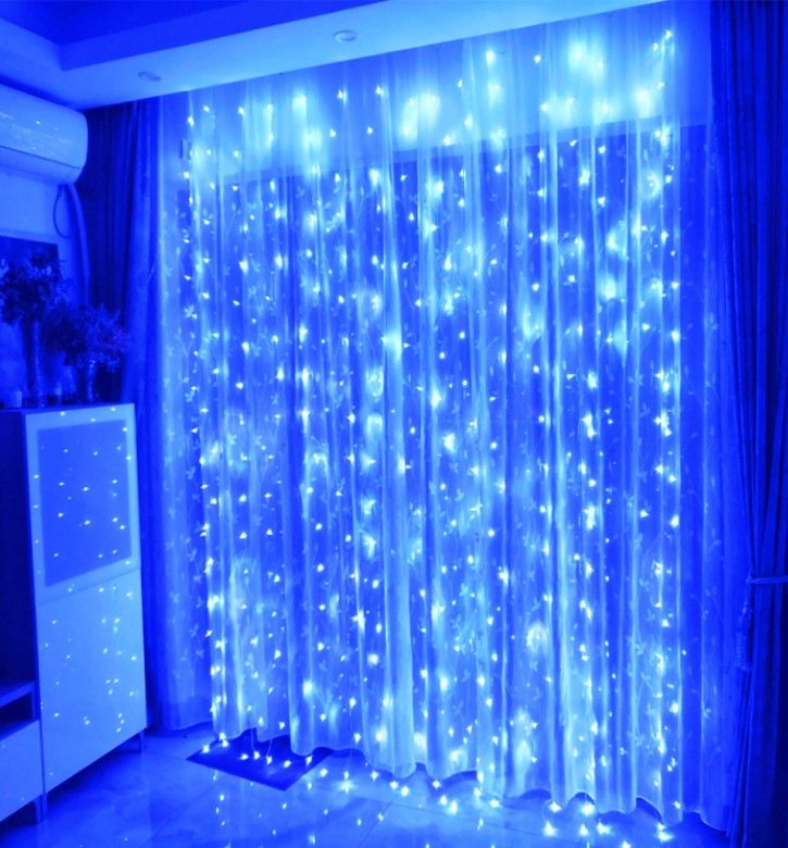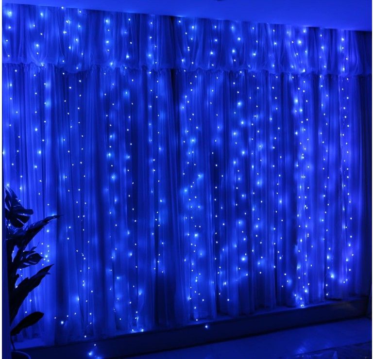 Instalație luminoasă Crăciun 120 LED-uri albastre, 3 metri x 1 metru, fir transparent, model perdea, interconectabila – Engros