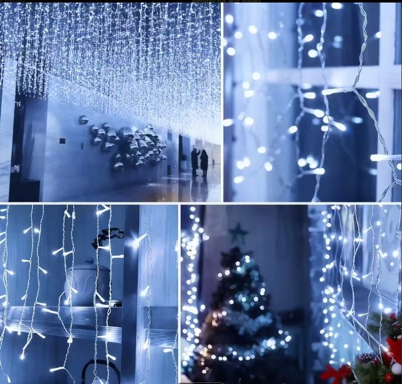 Instalație luminoasă Crăciun 120 LED-uri alb rece, 3 metri x 1 metru, fir transparent, model perdea, interconectabila – Engros