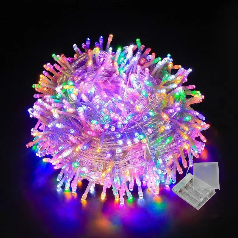Instalatie Liniara 10m de Craciun pe Baterii , cu 90 LED-uri, Multicolore, Fir Transparent Engros