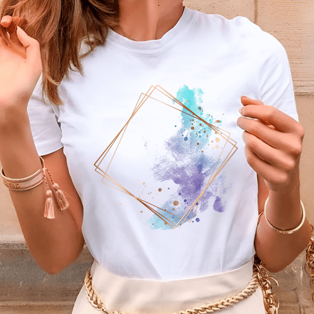 Tricou Casual Damă Engros Alb | Abstract Blue Purple | Bumbac Organic 100%, 160 g/m²