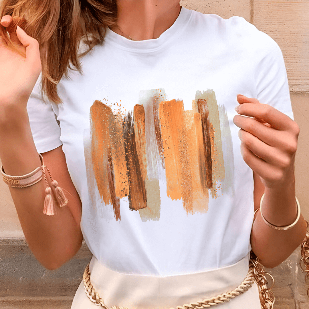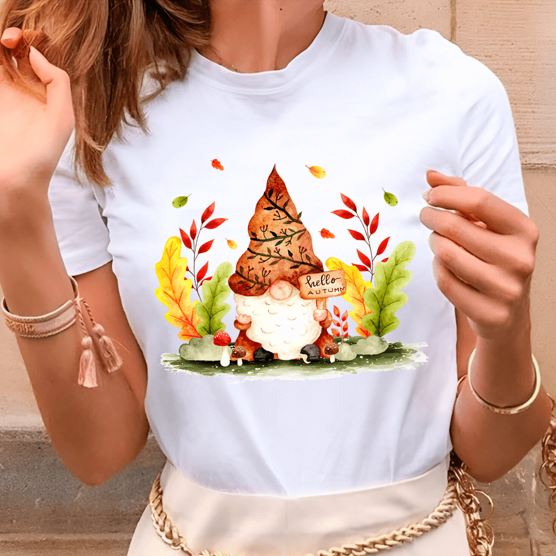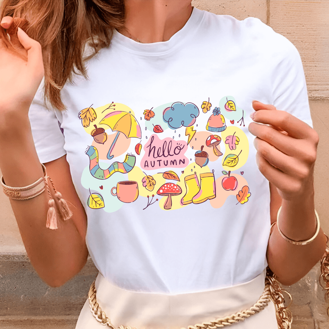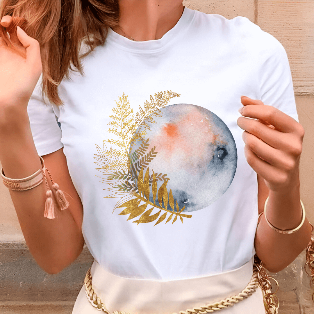 Tricou Casual Damă Engros Alb | Autumn In The Garden | Bumbac Organic 100%, 160 g/m²
