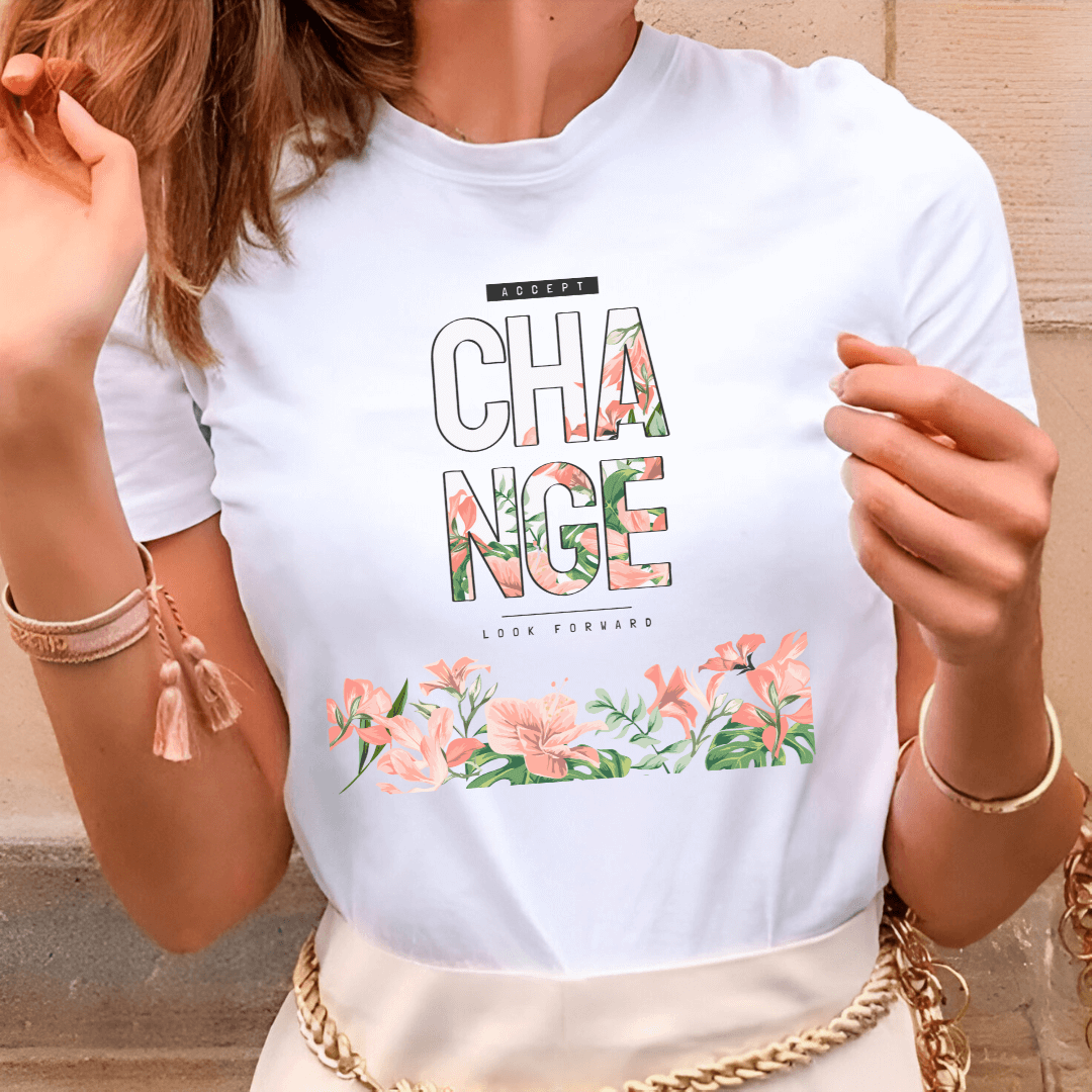 Tricou Casual Damă Engros Alb | Accept Change | Bumbac Organic 100%, 160 g/m²