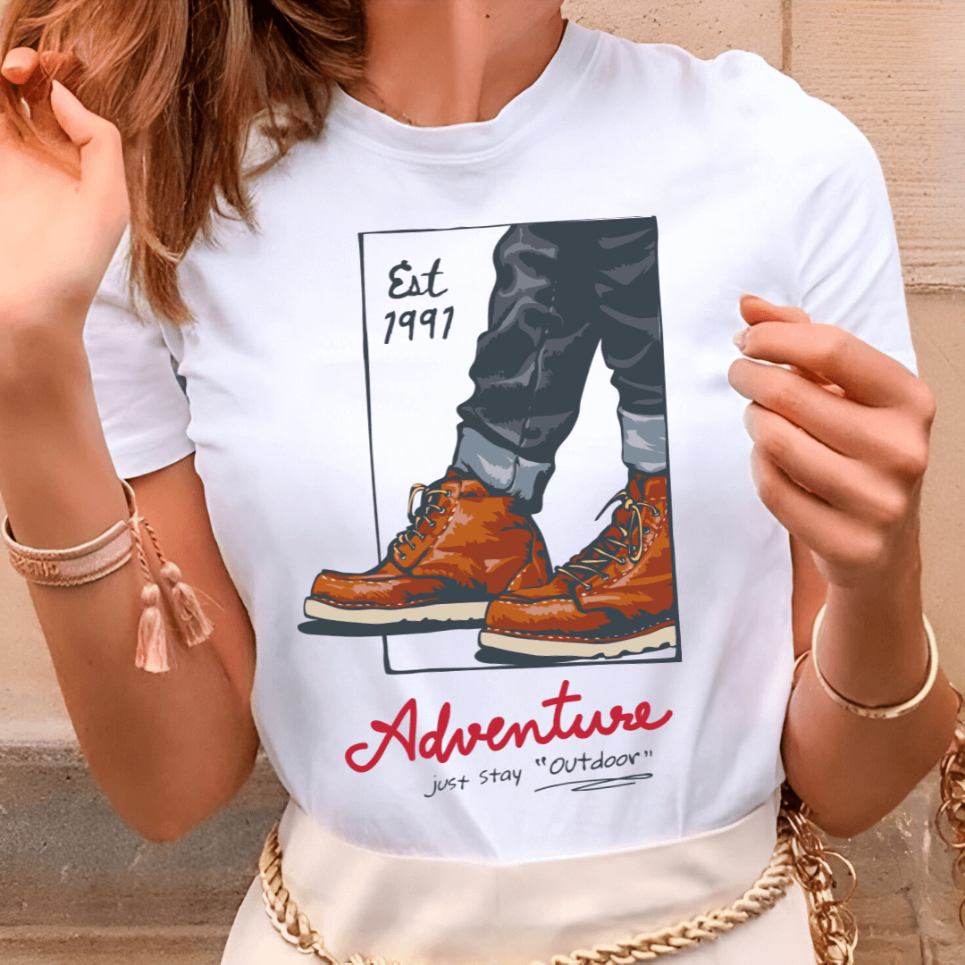 Tricou Casual Damă Engros Alb | Adventure Just Say Outdoor | Bumbac Organic 100%, 160 g/m²