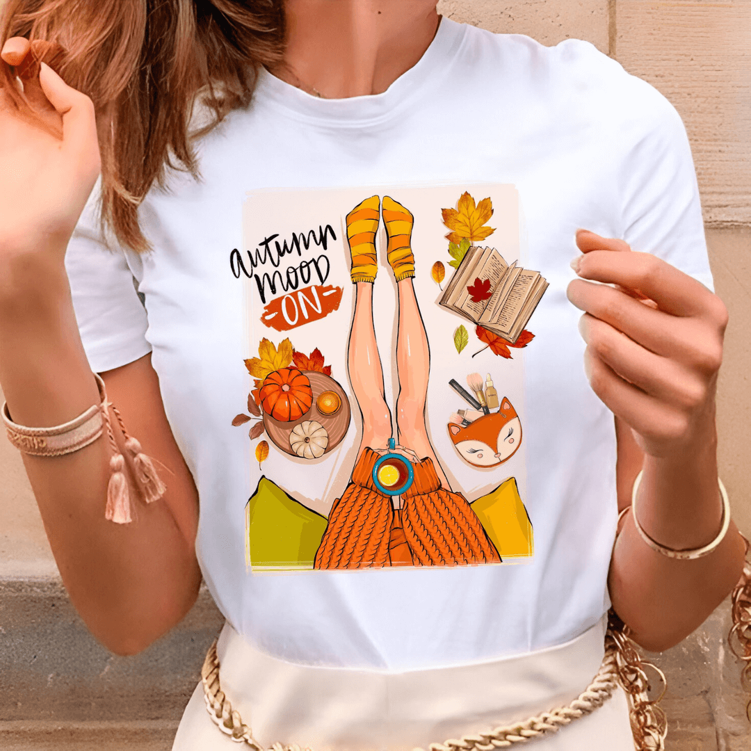 Tricou Casual Damă Engros Alb | Autumn Mood On | Bumbac Organic 100%, 160 g/m²