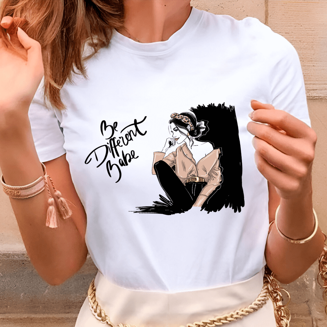 Tricou Casual Damă Engros Alb | Be Different Babe | Bumbac Organic 100%, 160 g/m²