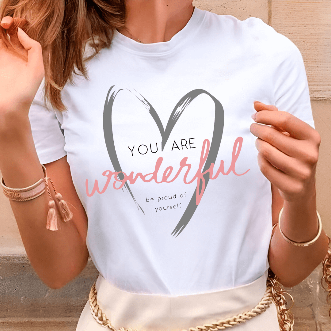 Tricou Casual Damă Engros Alb | Be Proud Of Yourself | Bumbac Organic 100%, 160 g/m²