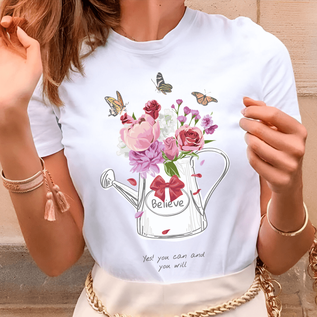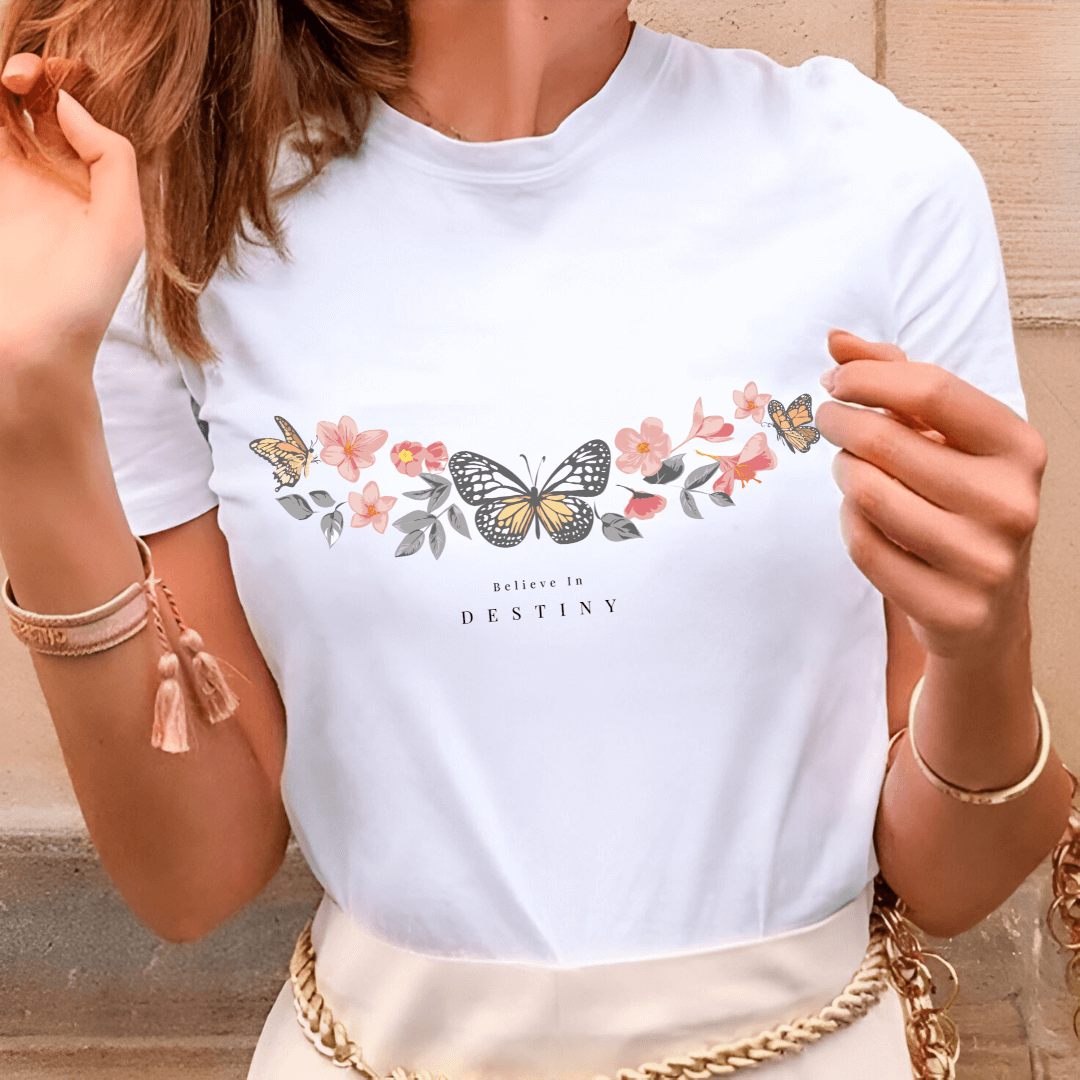 Tricou Casual Damă Engros Alb | Believe In Destiny | Bumbac Organic 100%, 160 g/m²