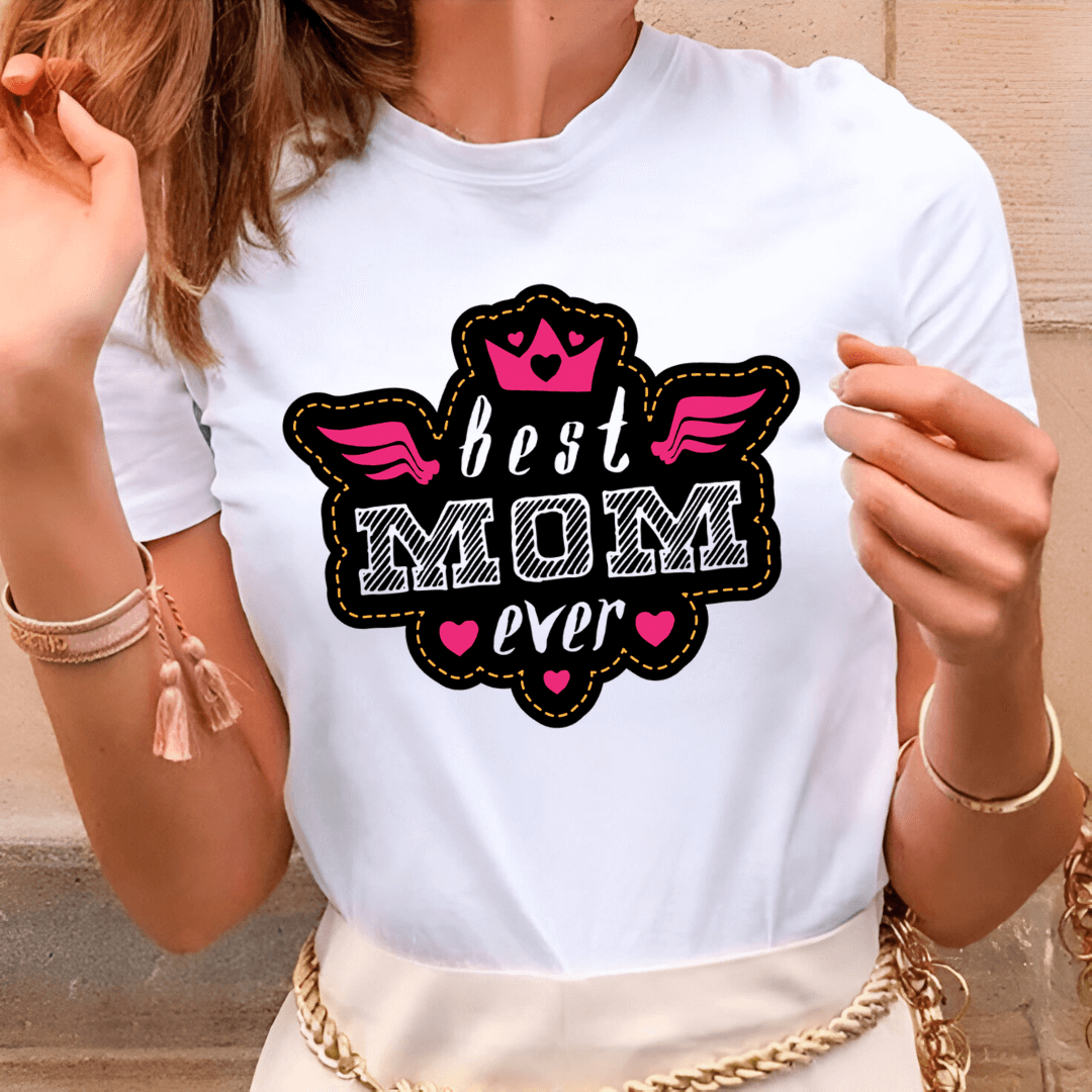 Tricou Casual Damă Engros Alb | Best Mom | Bumbac Organic 100%, 160 g/m²